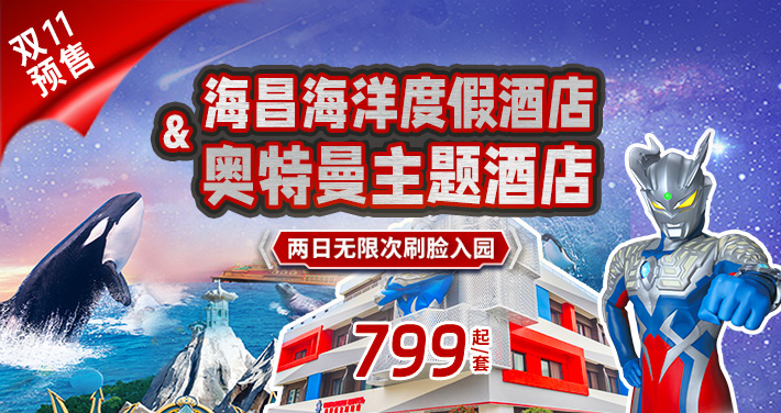 25-【双十一大促 王牌对王牌】躺平遛娃神操作〡仅需999元起,奥特曼/海昌度假酒店主题房→含早+2日无限刷脸入园+VIP通道,夜场鬼屋、机甲巡游、无人机烟花、水下嫦娥秀,一站式吃喝玩!