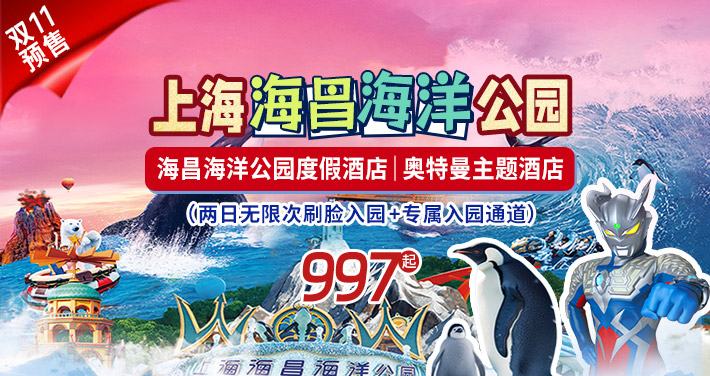 25-【双十一预售 美食美宿】保姆级遛娃攻略〡仅需997元起,打卡海昌海洋公园,躺平式遛娃神操作,奥特曼/海昌度假酒店主题房→含早+2日无限刷脸入园+VIP通道+自助晚餐/冰封剧场套餐,夜场鬼屋、机甲巡游、无人机烟花、水下嫦娥秀,一站式吃喝玩!