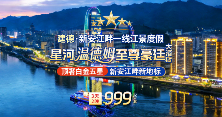 【新安江畔 一线江景】仅需999元起抢购建德星河温德姆至尊豪廷大酒店雅致星选客房2晚+双早+双人正餐,从17℃新安江到千年严州府,住进“雾江山城”的诗画里!